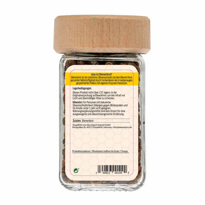 Bienenbrot enthält natürlich Vitamine, Mineralstoffe, Aminosäuren, Proteine, Lipide, Kohlenhydrate, Phenole und Flavonoide, die natürliche antioxidative Eigenschaften haben.