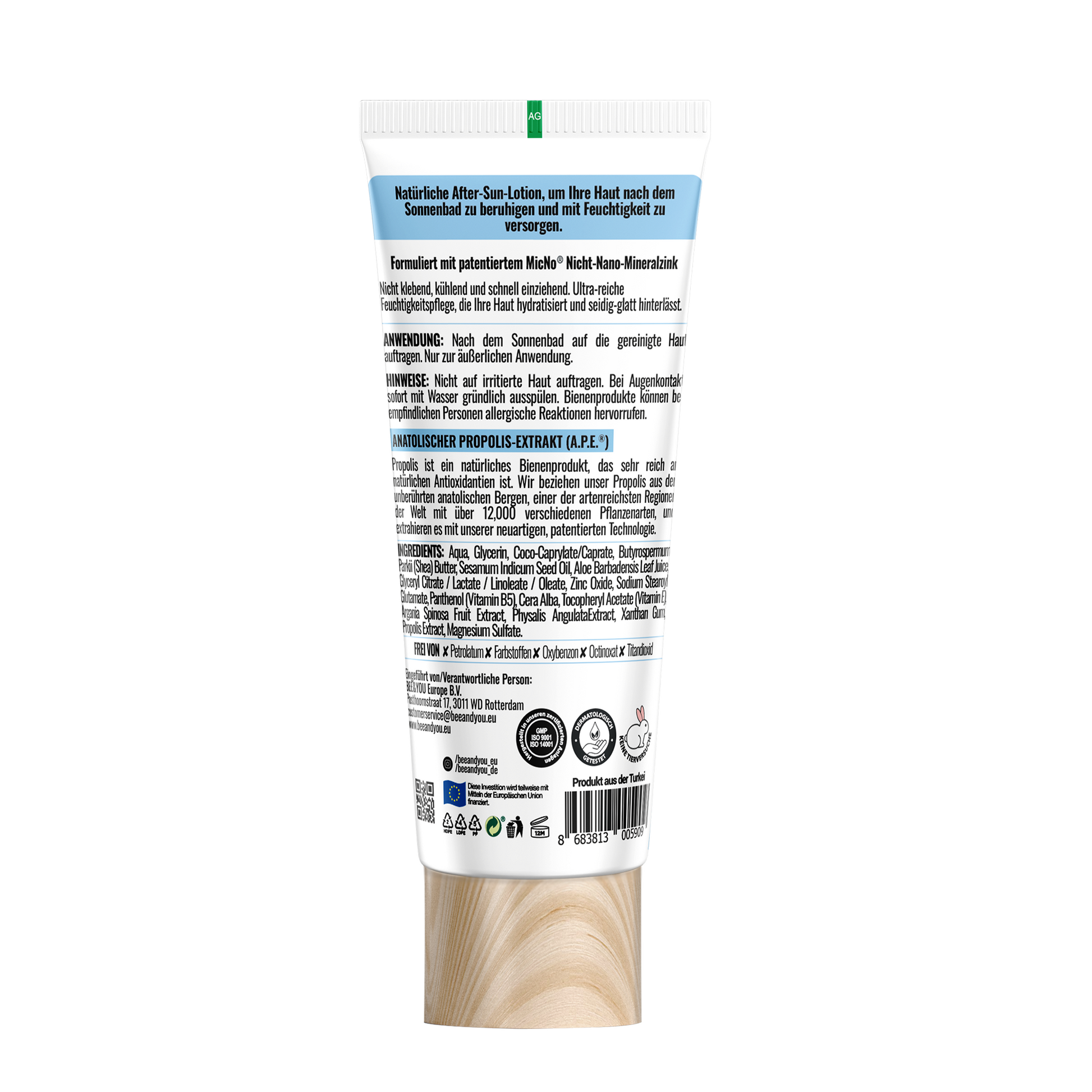 DIE ERSTE UND EINZIGE AFTER-SUN-FORMEL MIT NATÜRLICHEM BIENENPROPOLIS: Bienenpropolis ist ein starkes natürliches Antioxidans und sehr wirksam gegen Mikroorganismen, Sonnenbrand und Hautalterung.