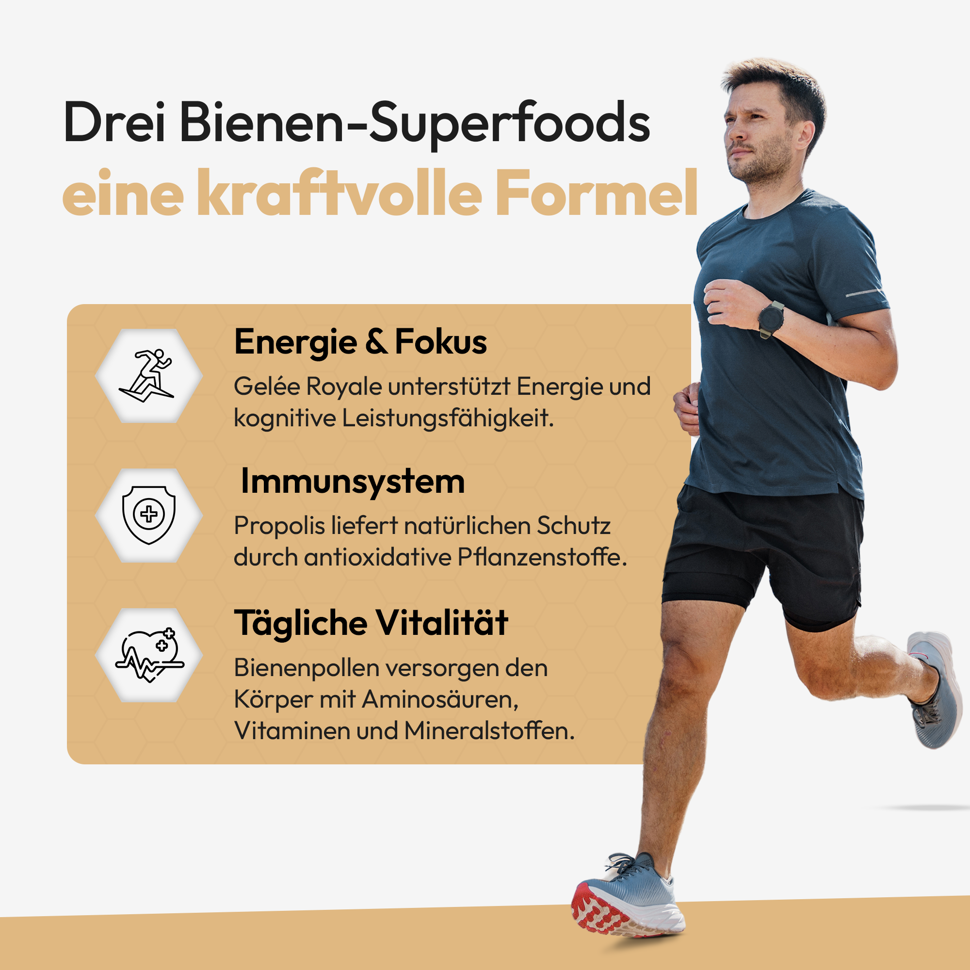 *GELÉE ROYALE : Gelée Royale ist das natürliche Superfood der Bienenkönigin, das das Immunsystem, die tägliche Leistungsfähigkeit und das Kollagen unterstützt.