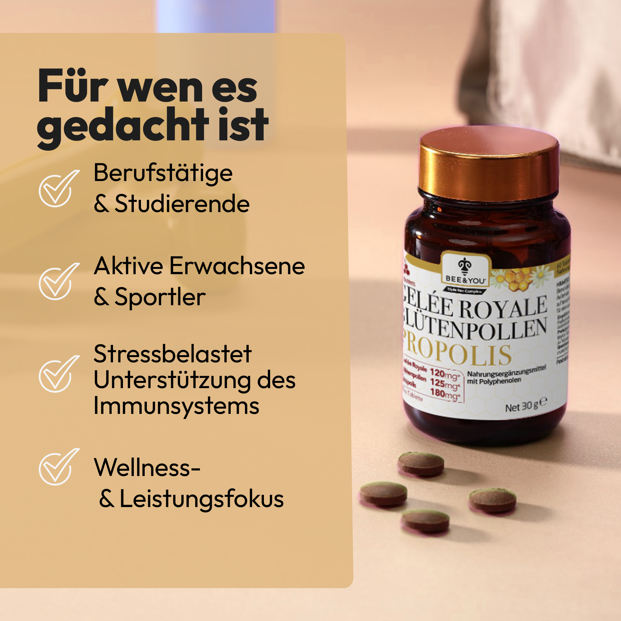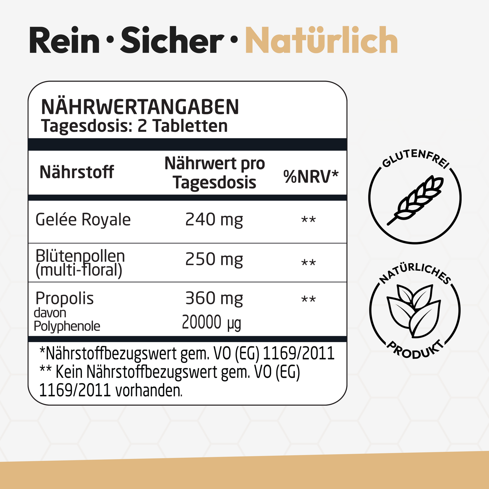 IMMUNSTÄRKENDE UNTERSTÜTZUNG: Unsere 100% natürlichen Tabletten mit Gelée Royale, Propolis und Bienengift sind eine Quelle von Antioxidantien. Gelée Royale, Bienengift und Propolis unterstützen auf natürliche Weise das Immunsystem.*